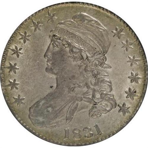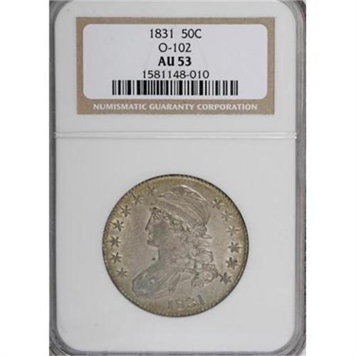 <B>1831 50C AU53 NGC.</B></I> O-102. NGC Census: (72/836). PCGS Population (76/705). Mintage: 5,873,660. Numismedia Wsl. Price for NGC/PCGS coin in AU53: $350. (#6159)<BR><BR><B>Coin Engraver:</B> John Reich<BR><BR><b>Shipping:</b> Coins & Currency (<a target="_blank" href="http://www.heritageauctions.com/common/shipping.php">view shipping information</a>)