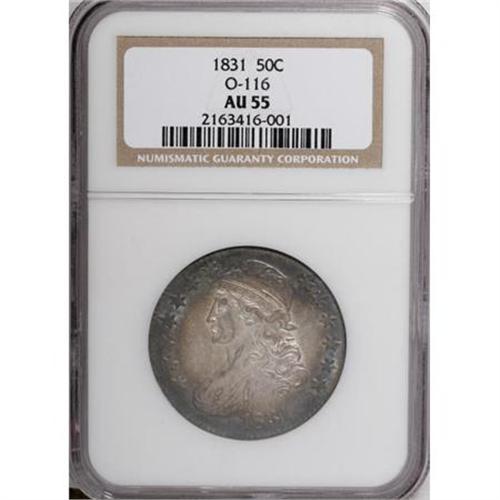 <B>1831 50C AU55 NGC.</B></I> O-116. NGC Census: (139/693). PCGS Population (146/556). Mintage: 5,873,660. Numismedia Wsl. Price for NGC/PCGS coin in AU55: $300. (#6159)<BR><BR><B>Coin Engraver:</B> John Reich<BR><BR><b>Shipping:</b> Coins & Currency (<a target="_blank" href="http://www.heritageauctions.com/common/shipping.php">view shipping information</a>)