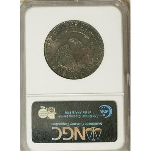 <B>1831 50C AU58 NGC.</B></I> O-114, R.3. A tiny die chip just above the drapery clasp identifies the obverse of this variety, the same obverse die also used for O-113 and O-115. Tan-blue patina bathes each side of this sharply struck AU58 half. <BR><BR><B>Coin Engraver:</B> John Reich<BR><BR><b>Shipping:</b> Coins & Currency (<a target="_blank" href="http://www.heritageauctions.com/common/shipping.php">view shipping information</a>)