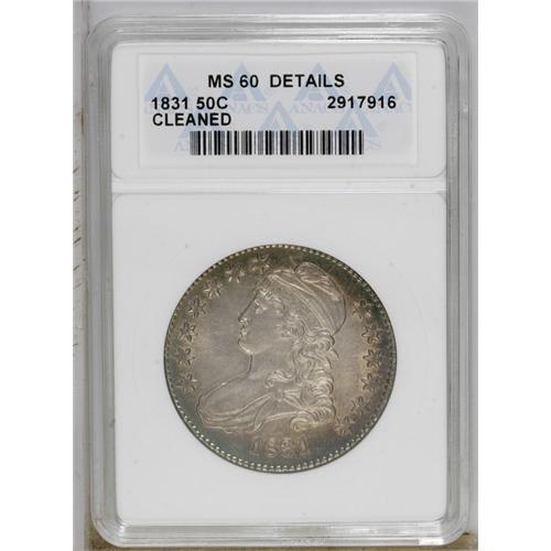1831 50C --Cleaned--ANACS. MS60 Details. No trace of we
