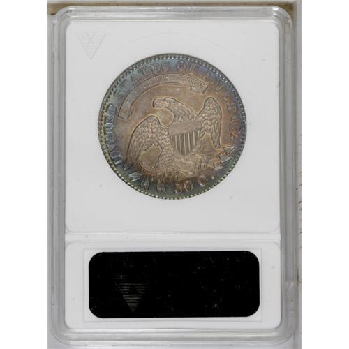 <B>1831 50C --Cleaned--ANACS. MS60 Details.</B></I> O-111, R.4. No trace of wear, though the luster is subdued on each side. Chameleonic orange and electric-blue patina covers each side.<BR><BR><b>Shipping:</b> Coin/Currency (<a target="_blank" href="http://www.heritageauctions.com/common/shipping.php">view shipping information</a>)