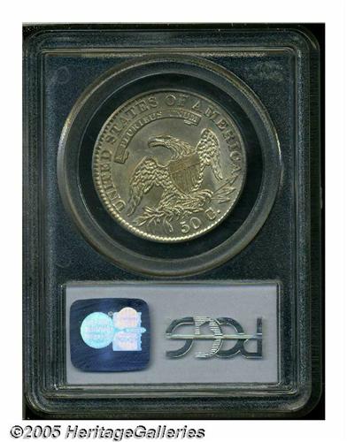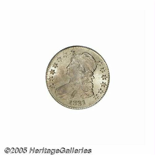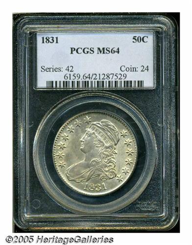 <B>1831<50C> MS64 PCGS.</B></I> O-110, R.2. Light apricot and steel-gray colors endow this lustrous and carefully preserved near-Gem. The reverse is particularly undisturbed. The strike is exacting, since only the upper left stars have not received exquisite definition from the strike.