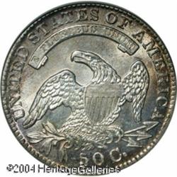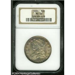 1831 50C MS66 NGC. O-103, R.1. Medium honey and ro <B>1831 50C MS66 NGC.</B></I> O-103, R.1. Medium honey and rose-red colors grace this highly lustrous and well struck premium Gem. The reverse is virtually pristine, and the obverse is carefully preserved. A faint die crack below the date and a recut upright on the 5 in the denomination confirms the Overton die pairing. Population: 9 in 66, 2 finer (11/04). <BR><BR><B>Important notice:</B> Heritage usually auctions material at the rate of 200-250 lots per hour. On some occasions eBay Live bid software or the Internet may not be able to keep up with the pace of the auction. We recommend placing a realistic absentee bid now as insurance to avoid disappointment. Occasionally the auctioneer may eliminate or reject an eBay Live bid, and the auctioneer may also reopen a lot after the close of the eBay live bidding (usually because we missed an audience bid), and may reject your bid even if it shows you as the winning bidder. By bidding via eBay Live, you agree that Heritage may award the lot to another bidder at its sole discretion under the circumstances described above or any other reasonable circumstances. Since eBay bids are not shown to us until we open the lot on the floor, we treat those bids just like floor bids. In most cases the floor responds before the eBay bid is presented to us, due to Internet lag time, so for consistency we have made it a policy that floor bids are always considered first over tie eBay live bids. Also please note that all Heritage lots purchased through eBay Live carry a 20% Buyer's Premium. Please make sure you read the Terms and Conditions before you bid. This lot is being auctioned in conjunction with a live floor auction by Heritage Galleries & Auctioneers. All final auction and invoice information will be supplied by Heritage Galleries & Auctioneers, and all other information should be considered preliminary. Lot:6076