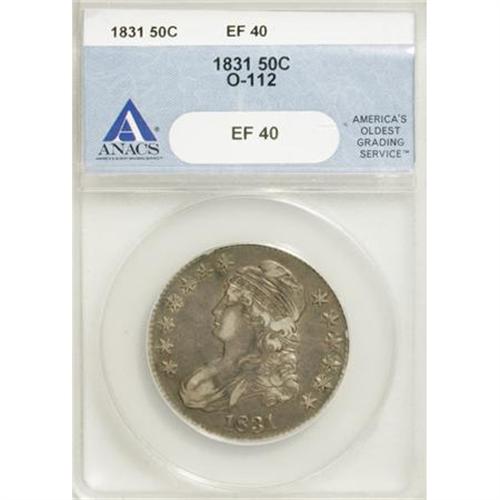 <B>1831 50C XF40 ANACS.</B></I> O-112. NGC Census: (28/1006). PCGS Population (38/952). Mintage: 5,873,660. Numismedia Wsl. Price for NGC/PCGS coin in XF40: $71. (#6159)<BR><BR><B>Coin Engraver:</B> John Reich<BR><BR><b>Shipping:</b> Coins & Currency (<a target="_blank" href="http://www.heritageauctions.com/common/shipping.php">view shipping information</a>)