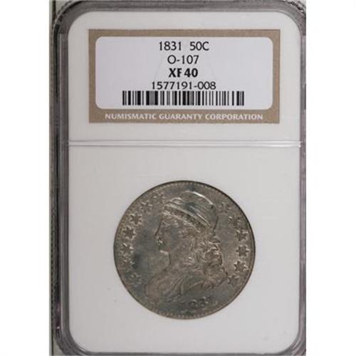 <B>1831 50C XF40 NGC.</B></I> O-107. NGC Census: (31/1044). PCGS Population (38/976). Mintage: 5,873,660. Numismedia Wsl. Price for NGC/PCGS coin in XF40: $130. (#6159)<BR><BR><B>Coin Engraver:</B> John Reich<BR><BR><b>Shipping:</b> Coins & Currency (<a target="_blank" href="http://www.heritageauctions.com/common/shipping.php">view shipping information</a>)