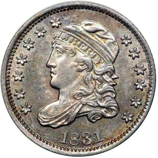 1831 Capped Bust Half Dime. PCGS graded MS-63. Well struck and nicely toned, this choice coin has plenty of mint frost on it (PCGS # 4278) .