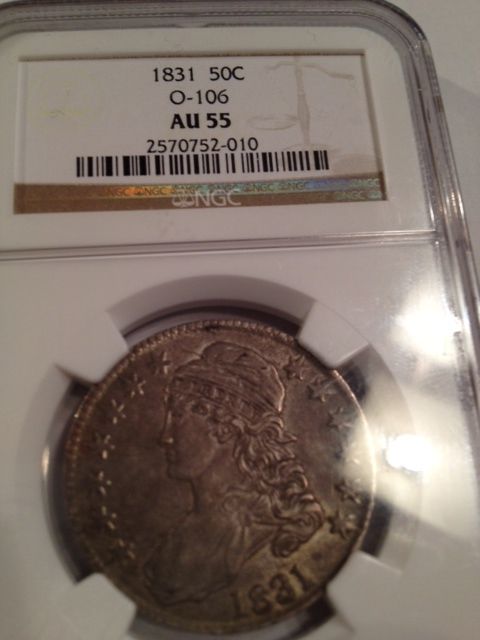 1831 CAPPED BUST SILVER HALF DOLLAR,NGC AU-55