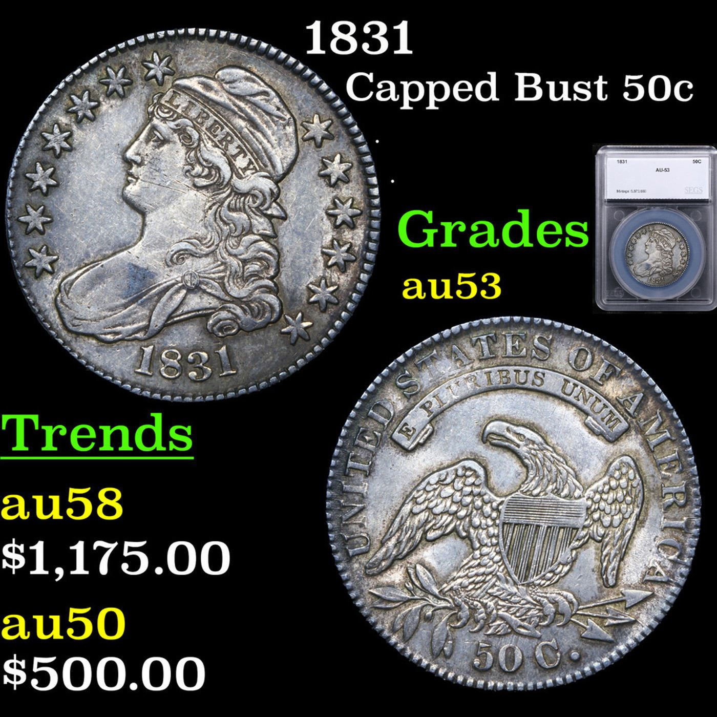 1831 Capped Bust Half Dollar 50c Graded au53 By SEGS.