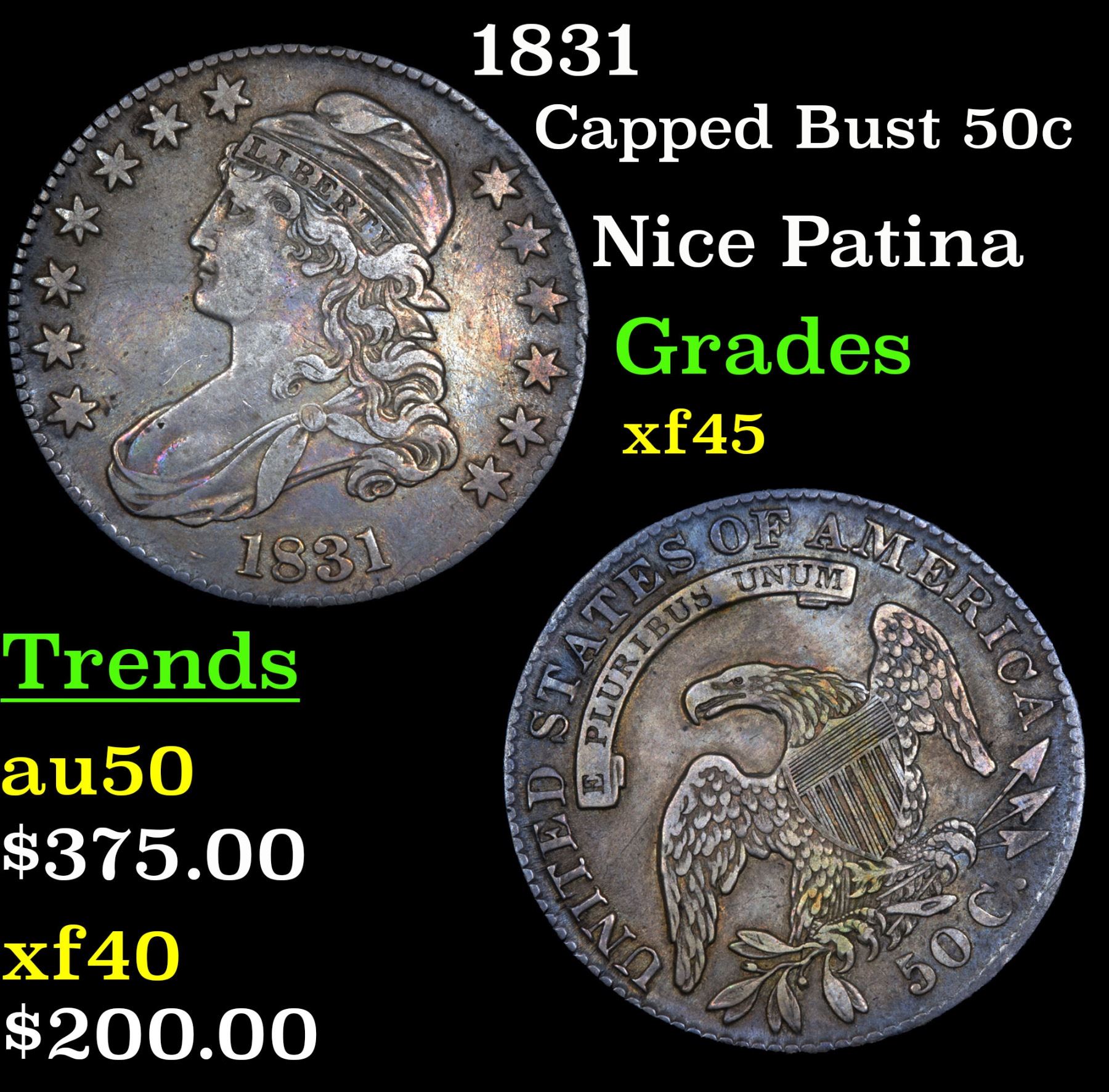 1831 Nice Patina . Capped Bust Half Dollar 50c Grades xf+.