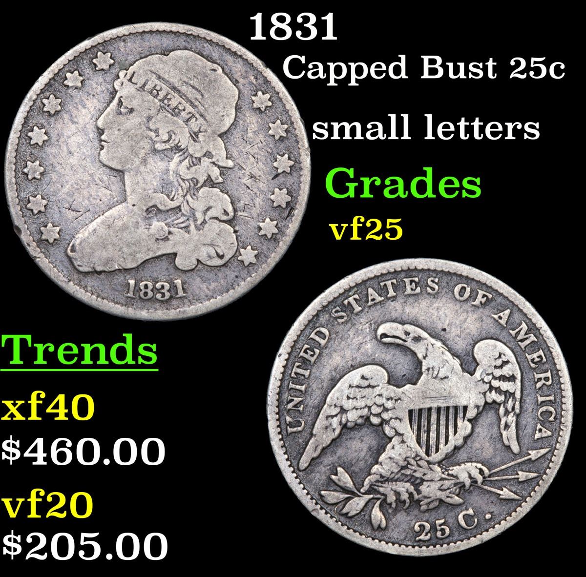 1831 small letters . Capped Bust Quarter 25c Grades vf+.