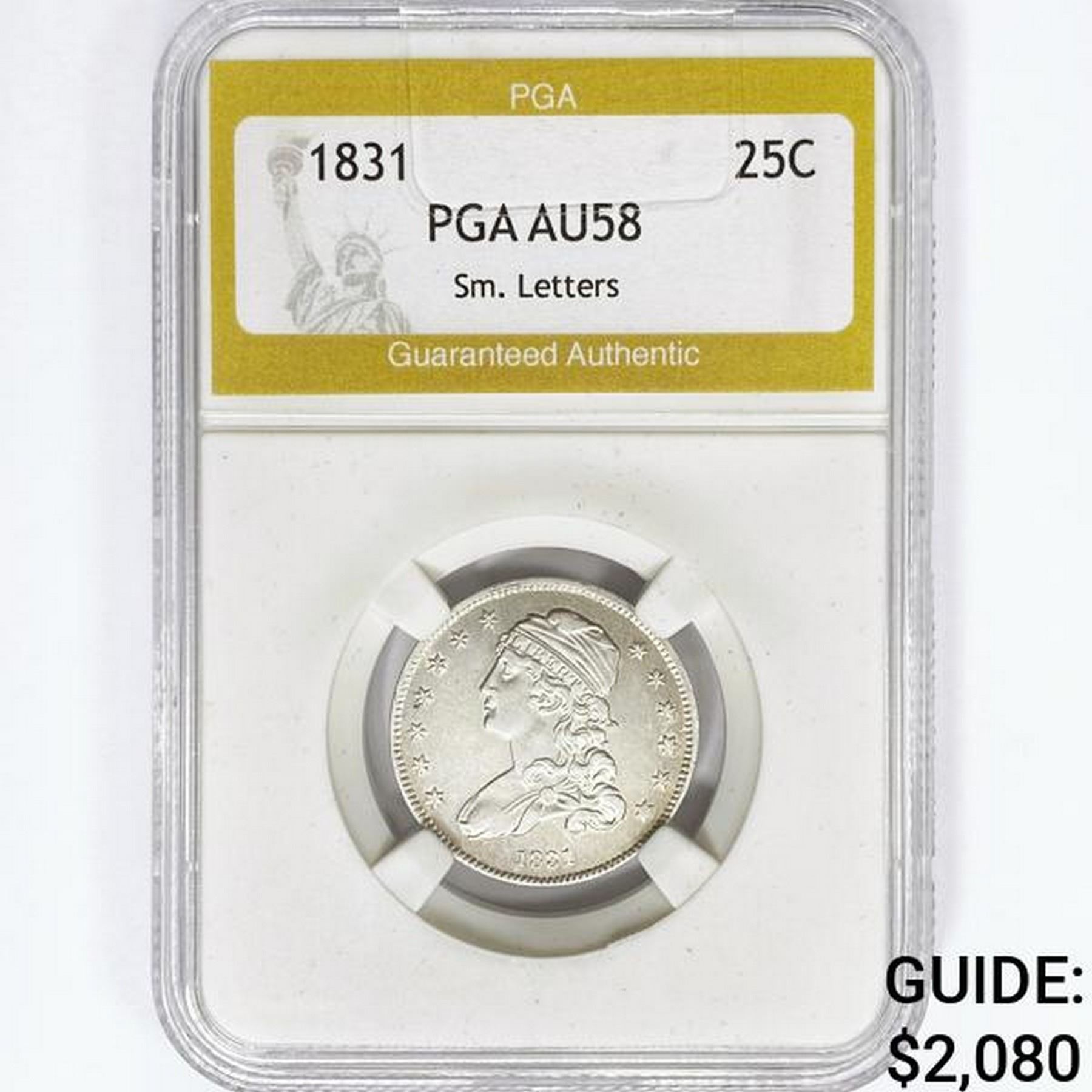 1831 Capped Bust Quarter PGA AU58 Sm. Letters
