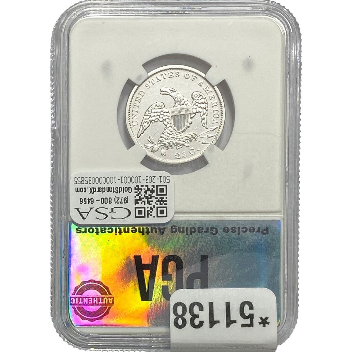 l. All non-certified coins and currency are guaranteed genuine, but are not guaranteed as to grade, since grading is a matter of opinion, an art and not a science, and therefore the description rendered by GSA or any third-party grading service may not agree with the opinion of others (including trained experts), and the same expert may not grade the same item with the same grade at two different times. GSA may, but is not obligated to, express an opinion as to non-certified numismatic items, in GSA’s opinion, or by its employees’ experience and the current interpretation of the American Numismatic Association’s standards as of the date the catalog was prepared. There is no guarantee or warranty expressed or implied that the grading opinions utilized by GSA, if any, will meet the standards of any grading service at any time in the future.