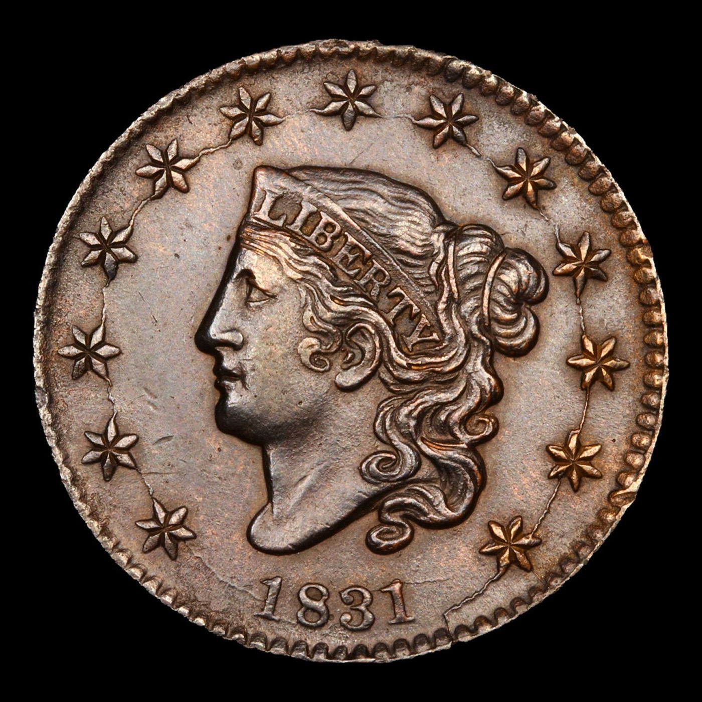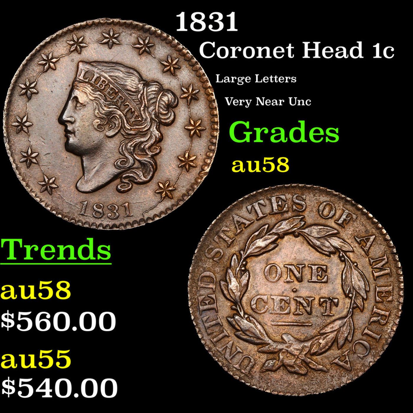 1831 Coronet Head Large Cent 1c Grades Choice AU/BU Slider.