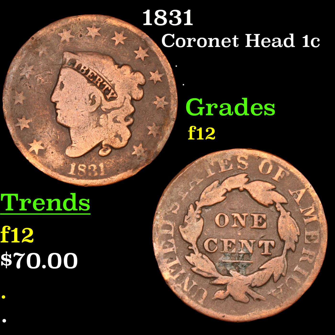 1831 Coronet Head Large Cent 1c Grades f, fine