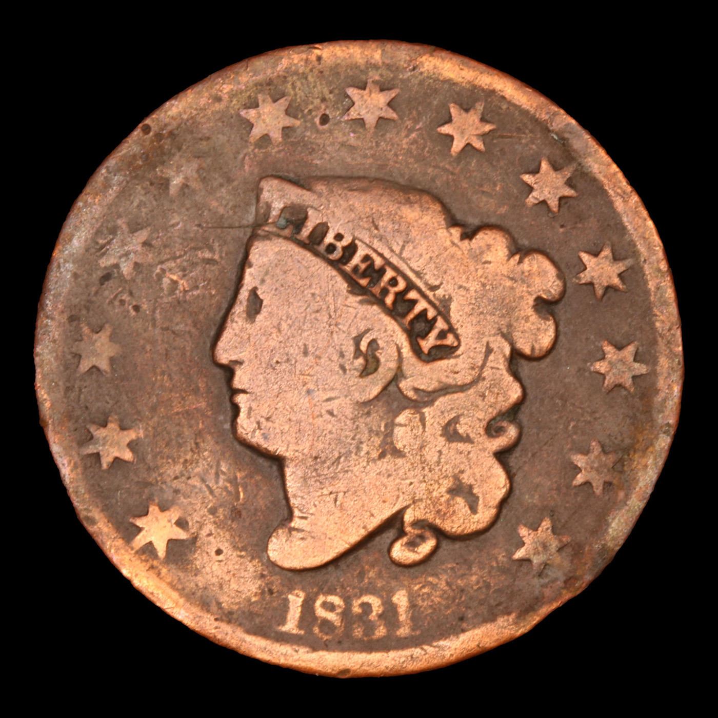 1831 Coronet Head Large Cent 1c Grades f, fine.