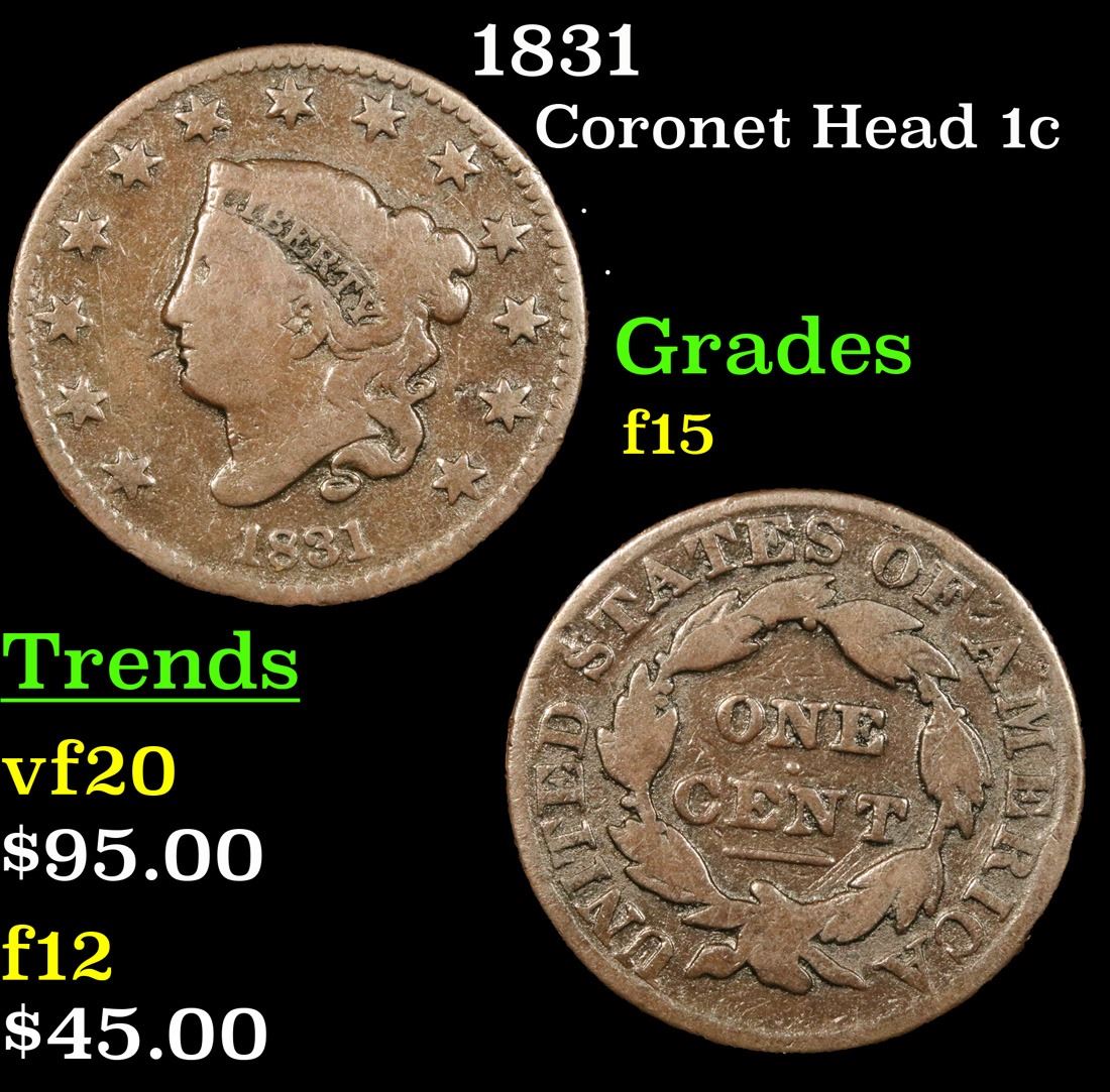 1831 . . Coronet Head Large Cent 1c Grades f+.