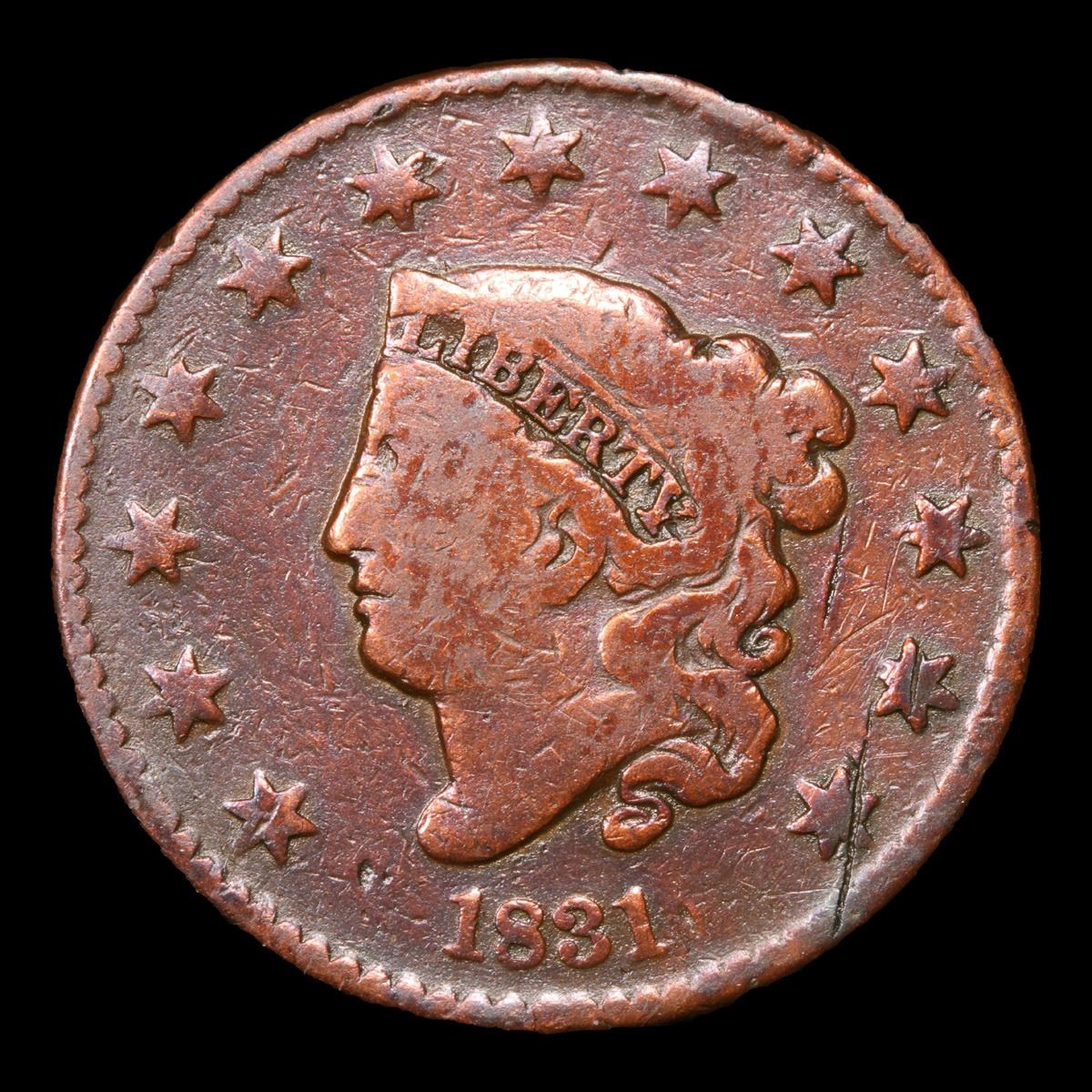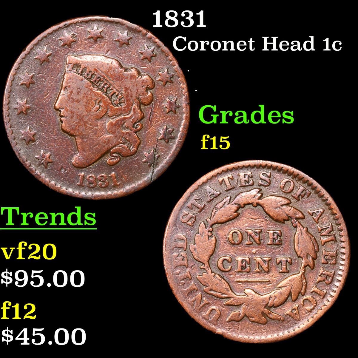1831 . . Coronet Head Large Cent 1c Grades f+.