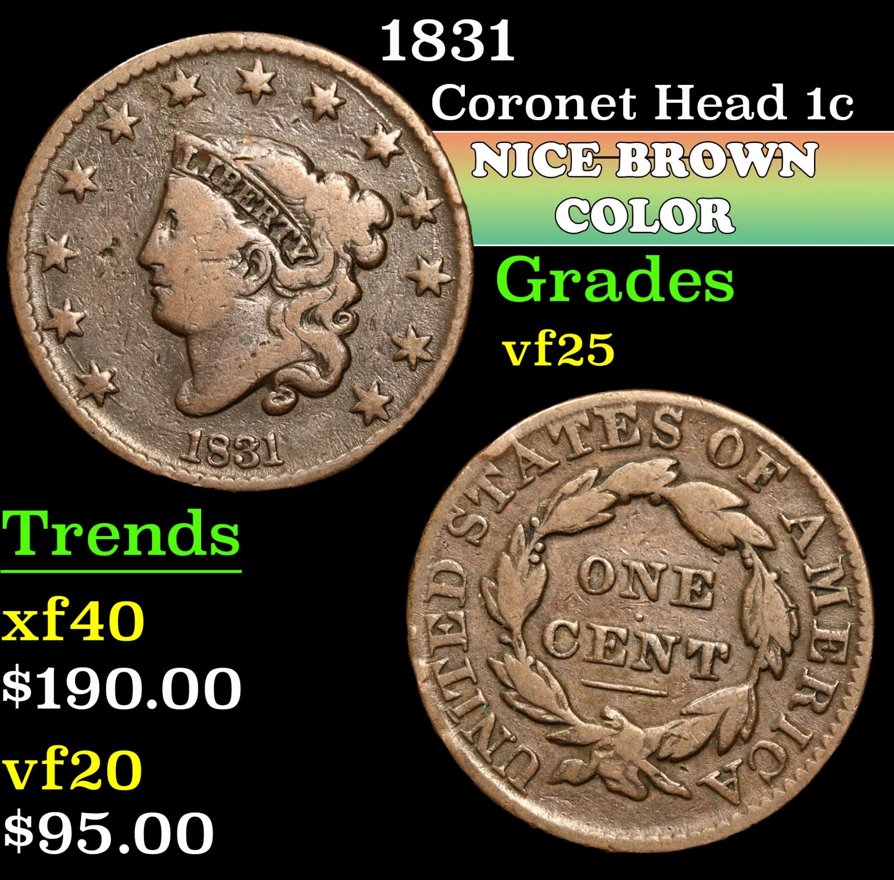 1831 . . Coronet Head Large Cent 1c Grades vf+.