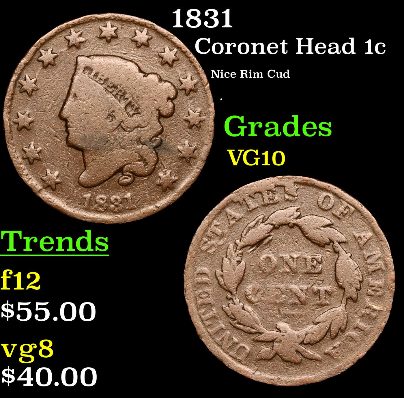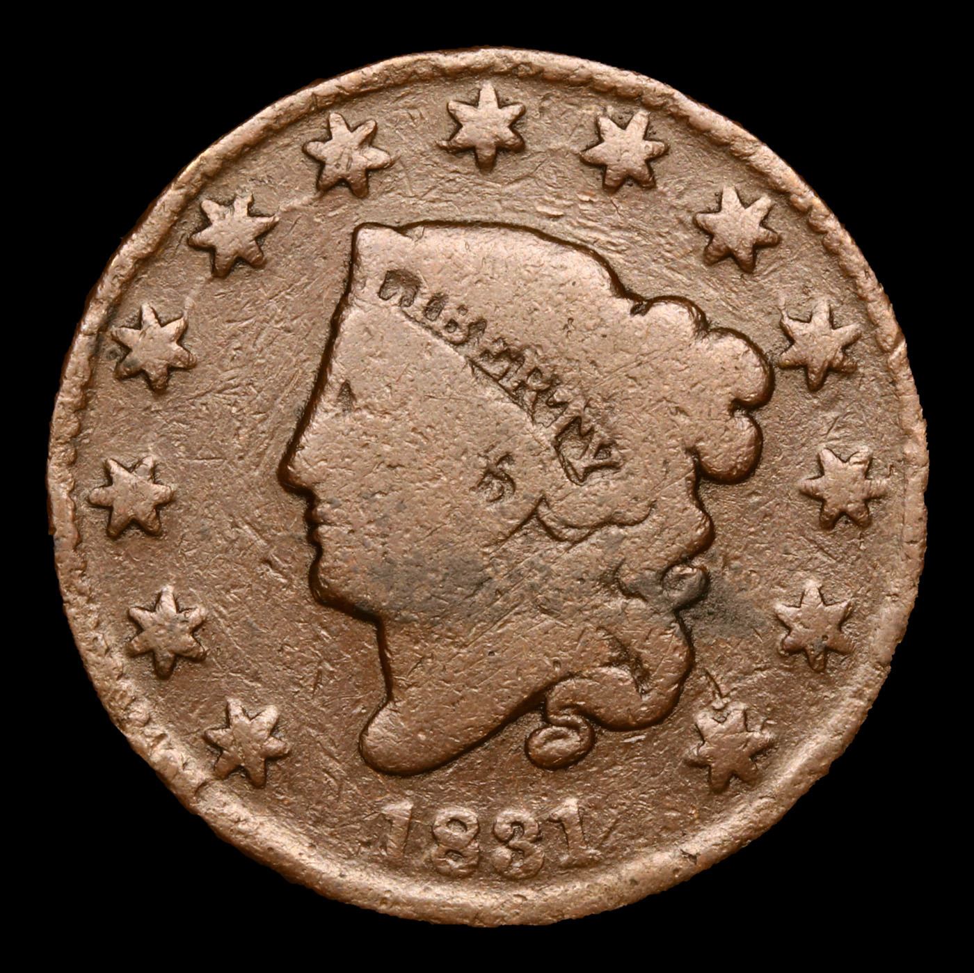 1831 Coronet Head Large Cent 1c Grades vg+.