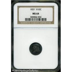 1831 H10C MS64 NGC. LM-5, V-5, R-1. Rose-pink and <B>1831 H10C MS64 NGC.</B></I> LM-5, V-5, R-1. Rose-pink and sea-green colors adorn this sharply struck Half Dime, which is denied classification as a Gem by a faint slide mark on the cheek. <BR><BR><B>Important notice:</B> Heritage usually auctions material at the rate of 200-250 lots per hour. On some occasions eBay Live bid software or the Internet may not be able to keep up with the pace of the auction. We recommend placing a realistic absentee bid now as insurance to avoid disappointment. Occasionally the auctioneer may eliminate or reject an eBay Live bid, and the auctioneer may also reopen a lot after the close of the eBay live bidding (usually because we missed an audience bid), and may reject your bid even if it shows you as the winning bidder. By bidding via eBay Live, you agree that Heritage may award the lot to another bidder at its sole discretion under the circumstances described above or any other reasonable circumstances. Since eBay bids are not shown to us until we open the lot on the floor, we treat those bids just like floor bids. In most cases the floor responds before the eBay bid is presented to us, due to Internet lag time, so for consistency we have made it a policy that floor bids are always considered first over tie eBay live bids. Also please note that all Heritage lots purchased through eBay Live carry a 20% Buyer's Premium. Please make sure you read the Terms and Conditions before you bid. This lot is being auctioned in conjunction with a live floor auction by Heritage Galleries & Auctioneers. All final auction and invoice information will be supplied by Heritage Galleries & Auctioneers, and all other information should be considered preliminary. Lot:5669
