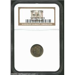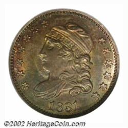 1831 H10C MS65 NGC. V-3, LM-7, R.2. Among the more plentiful die marriages of the 1831 Half Dime, V-