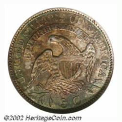 1831 H10C MS65 NGC. V-3, LM-7, R.2. Among the more plentiful die marriages of the 1831 Half Dime, V-3 was also used to strike proofs. The present Gem is certainly among the more visually impressive survivors of the business strike delivery. Rich sea-green and reddish-apricot colors are splashed over both sides in an irregular manner. There are some areas of near-brilliance intermingled on the reverse, but bothersome striking incompleteness is absent. Fully lustrous with a lone scrape in the left obverse field that is well concealed by the toning. Important notice: We expect to be auctioning lots at the rate of 200-250 per hour. Sometimes eBay Premier live bid software cannot keep up with that pace, so we strongly recommend that you place a realistic proxy bid now as insurance to avoid disappointment. Also please note that all Heritage/CAA lots purchased through eBay Premier carry a 20% Buyer's Premium. Please make sure you read the Terms and Conditions.
