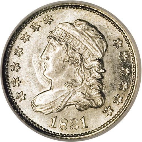 <B>1831<H10C> MS66 NGC.</B></I> V-3, LM-7, R.2. Mostly brilliant with thick mint luster, and just a slight silver-gold cast noted near the rims. The devices are well defined throughout, and there is a semi-prooflike glimmer in the fields. While there are numerous Mint State examples known of this variety, this piece may well be among the finest known. Only twice before have we offered this variety in so fine a grade.