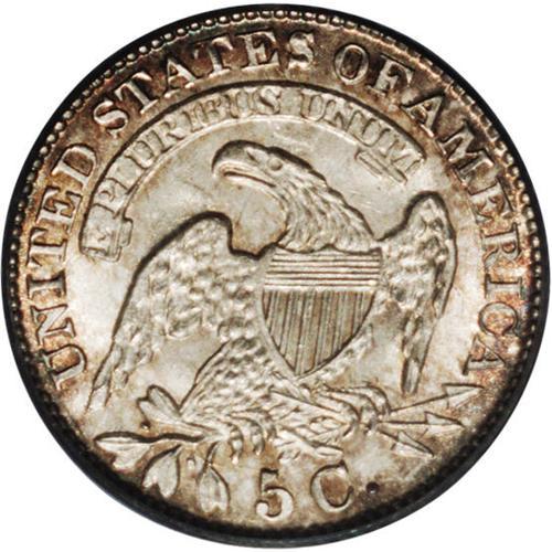 <B>1831<H10C> MS66 PCGS.</B></I> V-1, LM-6, R.1. Attributed by double punching on star 3, and on the reverse by the positioning of the edge of the C in 5 C. just below the tip of the stem. The design elements are well impressed, though the curl at Liberty's ear is a tad soft. Touches of russet, pale lavender, and sky-blue toning are mostly oriented to the border areas. The surfaces exhibit soft luster, and just a couple of minute handling marks on the reverse. A nice all-around coin. Population: 29 in 66, 7 finer (2/06).