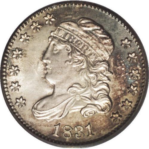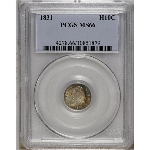 <B>1831 H10C MS66 PCGS.</B></I> V-1, LM-6, R.1. Streaks of golden-brown and ocean-blue toning grace this lustrous and needle-sharp Premium Gem. The 1831 has a mintage of just 1,242,700 pieces, distributed between seven different die marriages. Population: 36 in 66, 8 finer (10/06).<BR><BR><b>Shipping:</b> Coin/Currency (<a target="_blank" href="http://www.heritageauctions.com/common/shipping.php">view shipping information</a>)