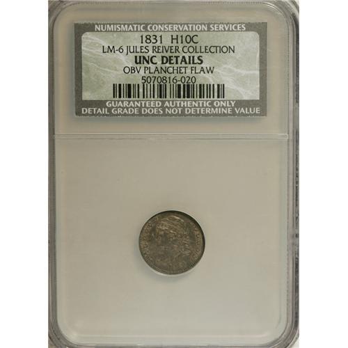 <B>1831 H10C --Obverse Planchet Flaw--NCS. Unc Details.</B></I> LM-6 Ex:Jules Reiver Collection. NGC Census: (5/467). PCGS Population (10/328). Mintage: 1,200,000. Numismedia Wsl. Price for NGC/PCGS coin in MS60: $292. (#4278)<BR><BR><b>Shipping:</b> Coins & Currency (<a target="_blank" href="http://www.heritageauctions.com/common/shipping.php">view shipping information</a>)