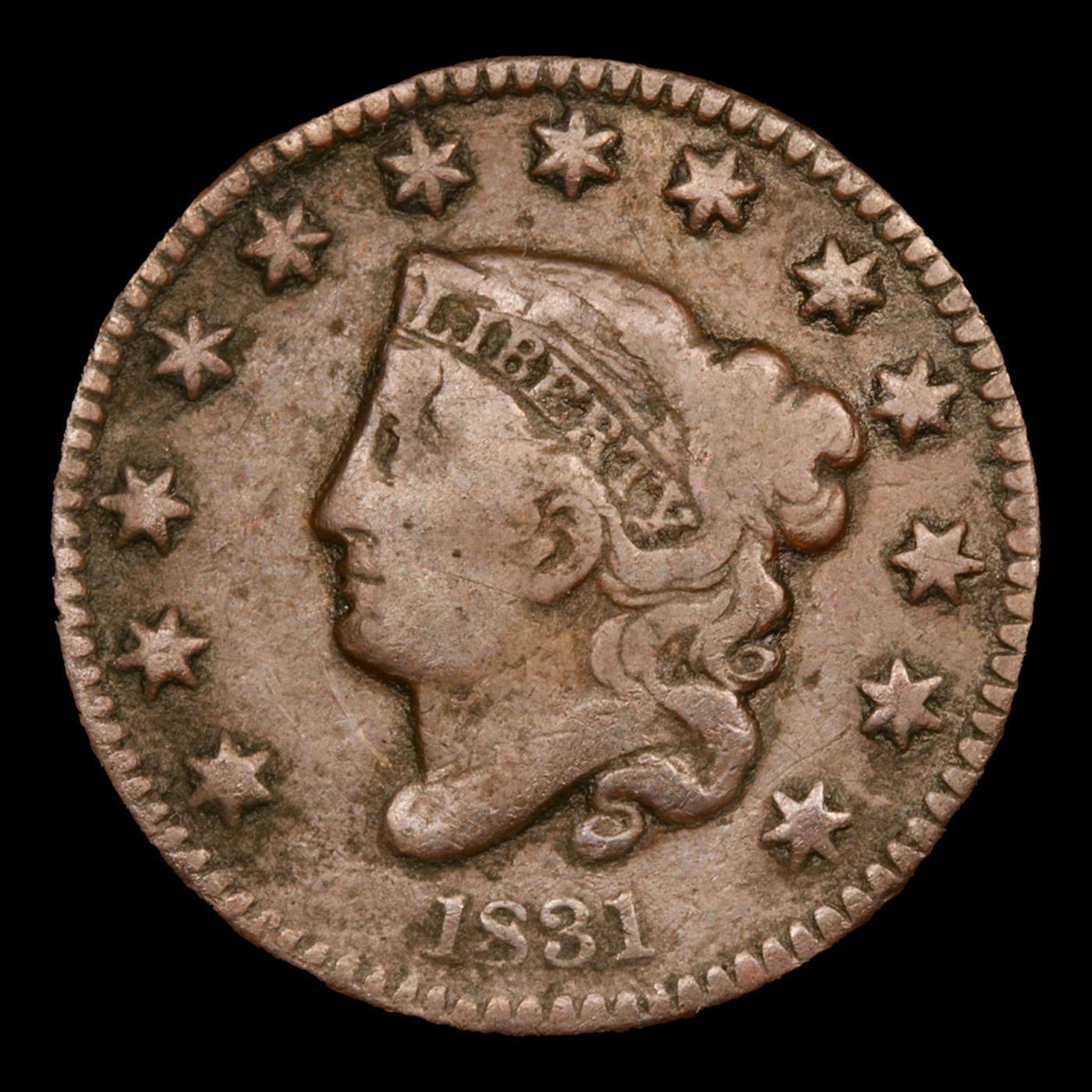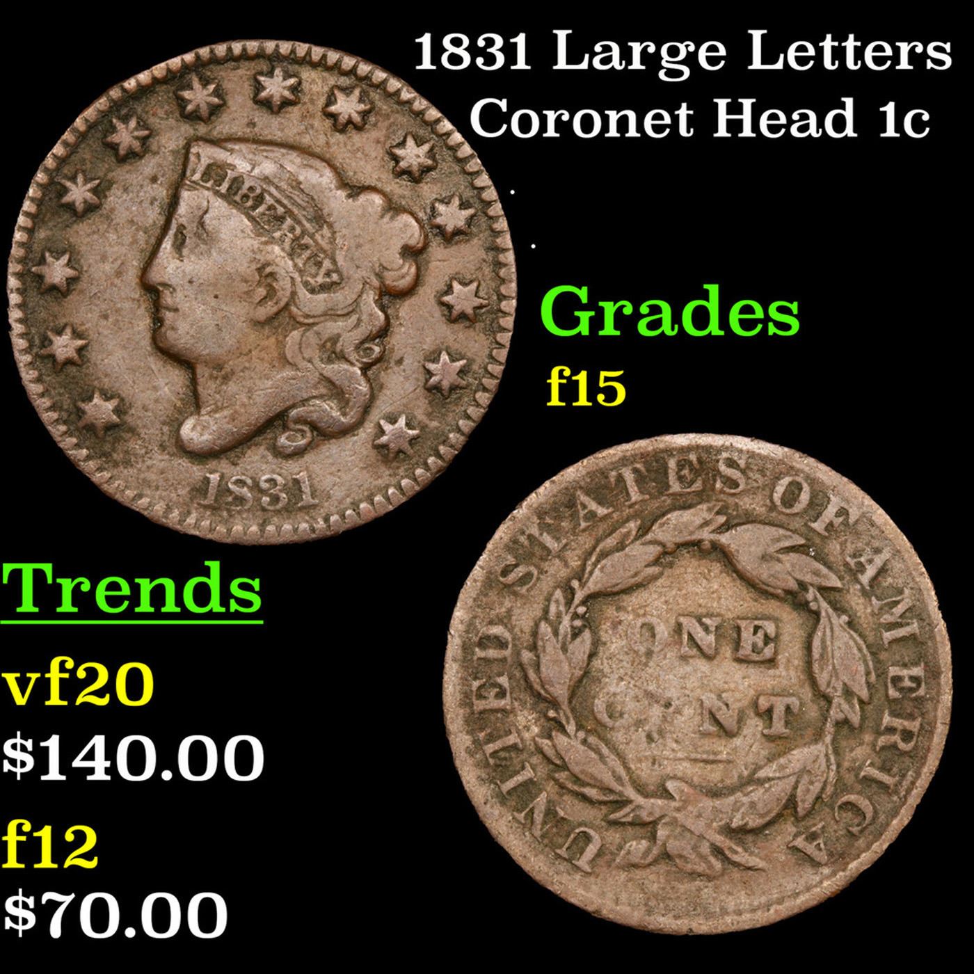 1831 Large Letters Coronet Head Large Cent 1c Grades f+.