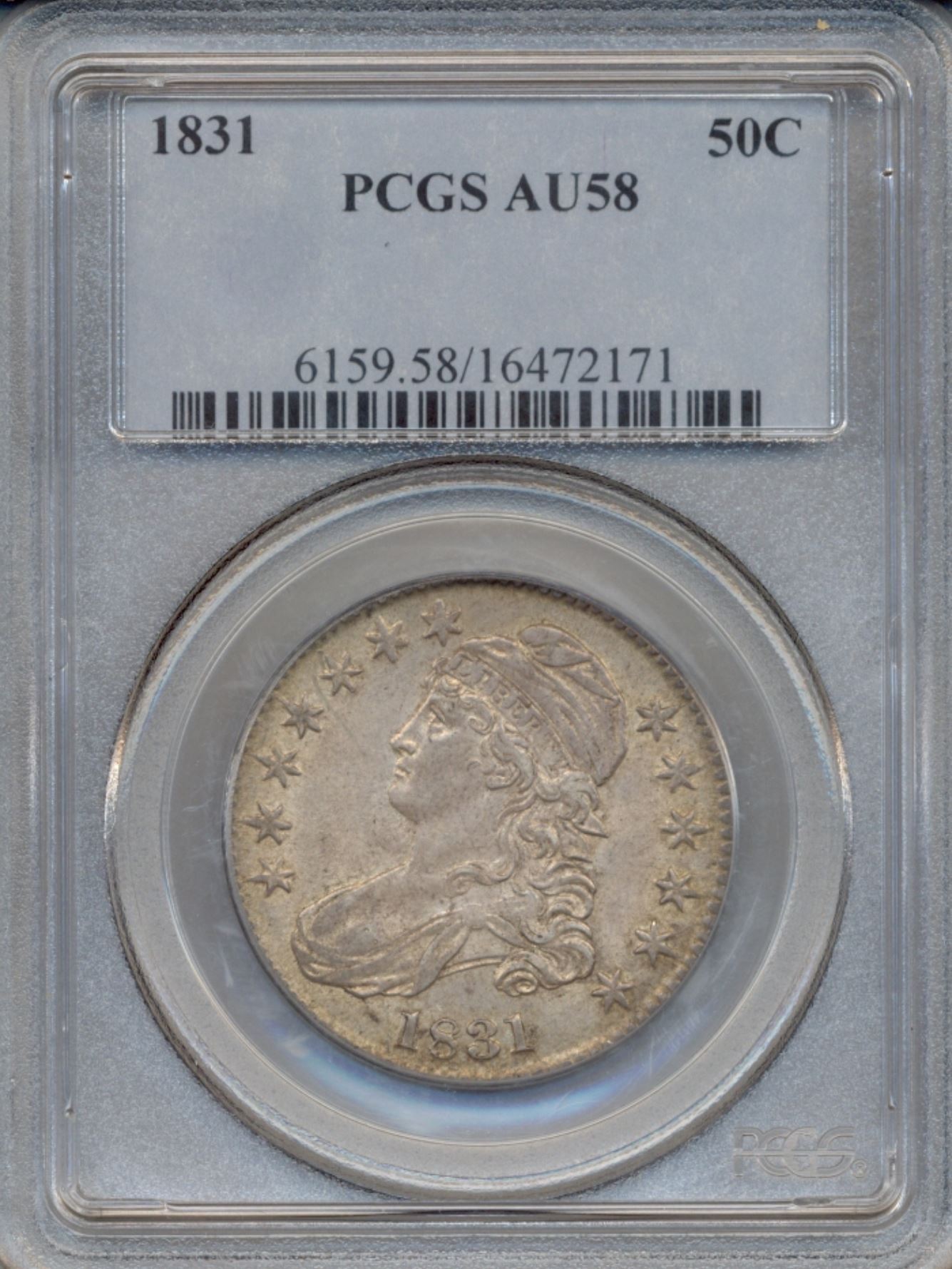 One 1831 Liberty Bust Half Dollar Coin PCGS AU58.