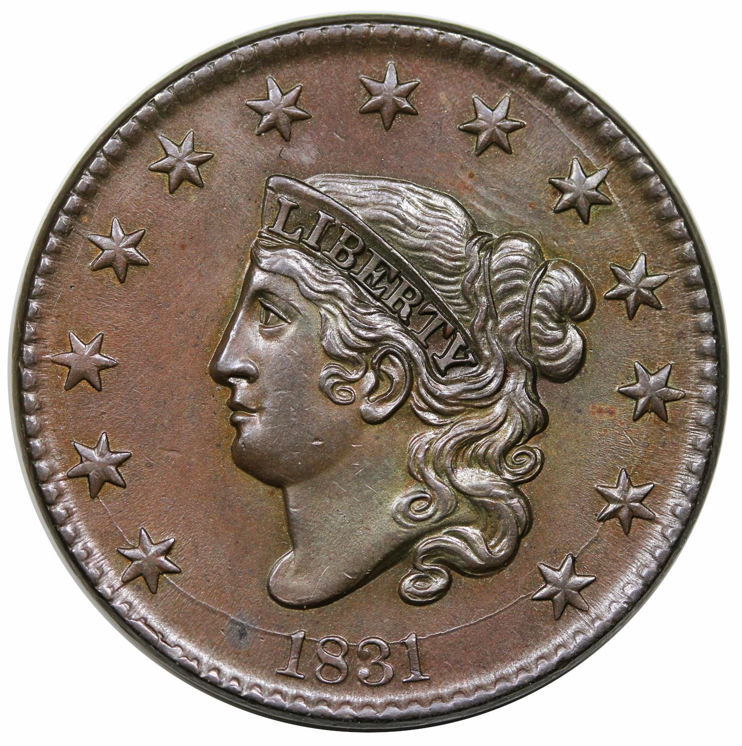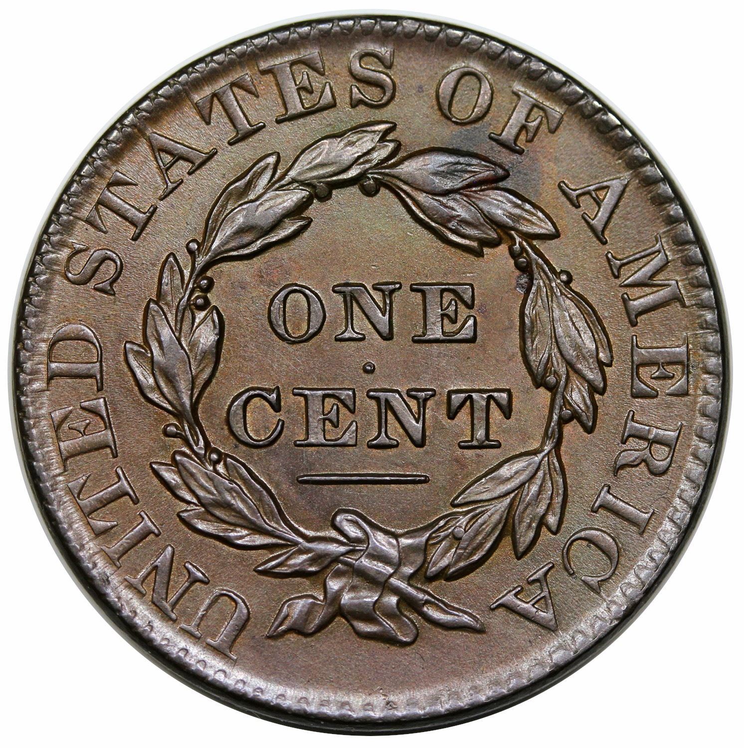 Large Letters. A barely worn 55 or better coin with just some extremely faint hairlines on the obverse and a spot of darker toning and slight roughness under OF. Steely light brown, both sides glossy, the reverse with cartwheel frost. A sharp looking coin despite the minor issues. M-LDS.