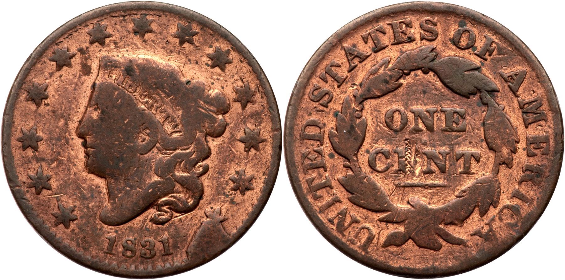 Very scarce 3 point Pyramid die break. Sharp enough detail, but cleaned bright red with a full complement of marks including a scrape at E of CENT, but the very scarce Pyramid break is bold and well defined.