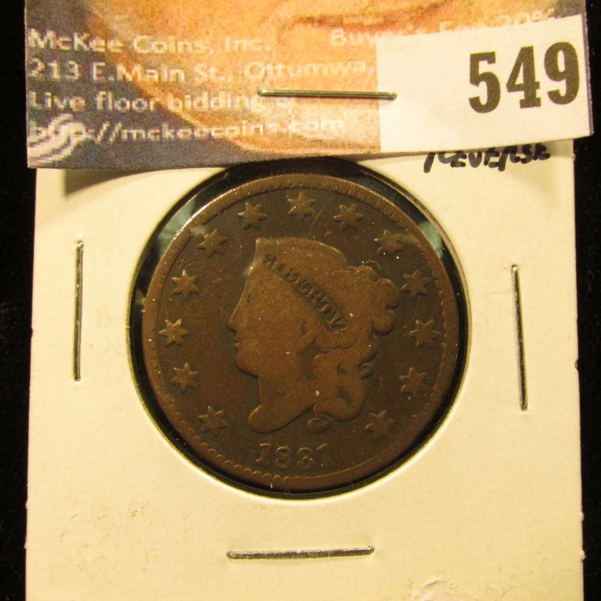 1831 U.S. Large Cent, G+. Rotated Reverse.