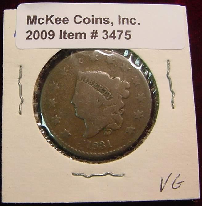 1831 U.S. Large Cent. VG-8.