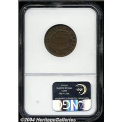 <B>1832<1/2 C> MS62 Brown NGC.</B></I> B-1, C-1, R.2. Well struck aside from the CEN in CENT. Generally chocolate-brown in color, although the cheek and left obverse field have a hint of deeper lilac patina. Devoid of relevant contact, and with good eye appeal. <BR><BR><B>Important notice:</B> Heritage usually auctions material at the rate of 200-250 lots per hour. On some occasions eBay Live bid software or the Internet may not be able to keep up with the pace of the auction. We recommend placing a realistic absentee bid now as insurance to avoid disappointment. Occasionally the auctioneer may eliminate or reject an eBay Live bid, and the auctioneer may also reopen a lot after the close of the eBay live bidding (usually because we missed an audience bid), and may reject your bid even if it shows you as the winning bidder. By bidding via eBay Live, you agree that Heritage may award the lot to another bidder at its sole discretion under the circumstances described above or any other reasonable circumstances. Since eBay bids are not shown to us until we open the lot on the floor, we treat those bids just like floor bids. In most cases the floor responds before the eBay bid is presented to us, due to Internet lag time, so for consistency we have made it a policy that floor bids are always considered first over tie eBay live bids. Also please note that all Heritage lots purchased through eBay Live carry a 20% Buyer's Premium. Please make sure you read the Terms and Conditions before you bid.