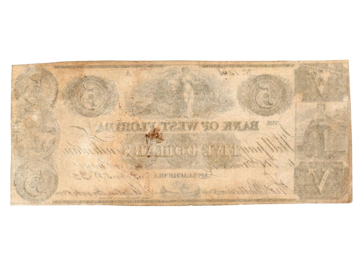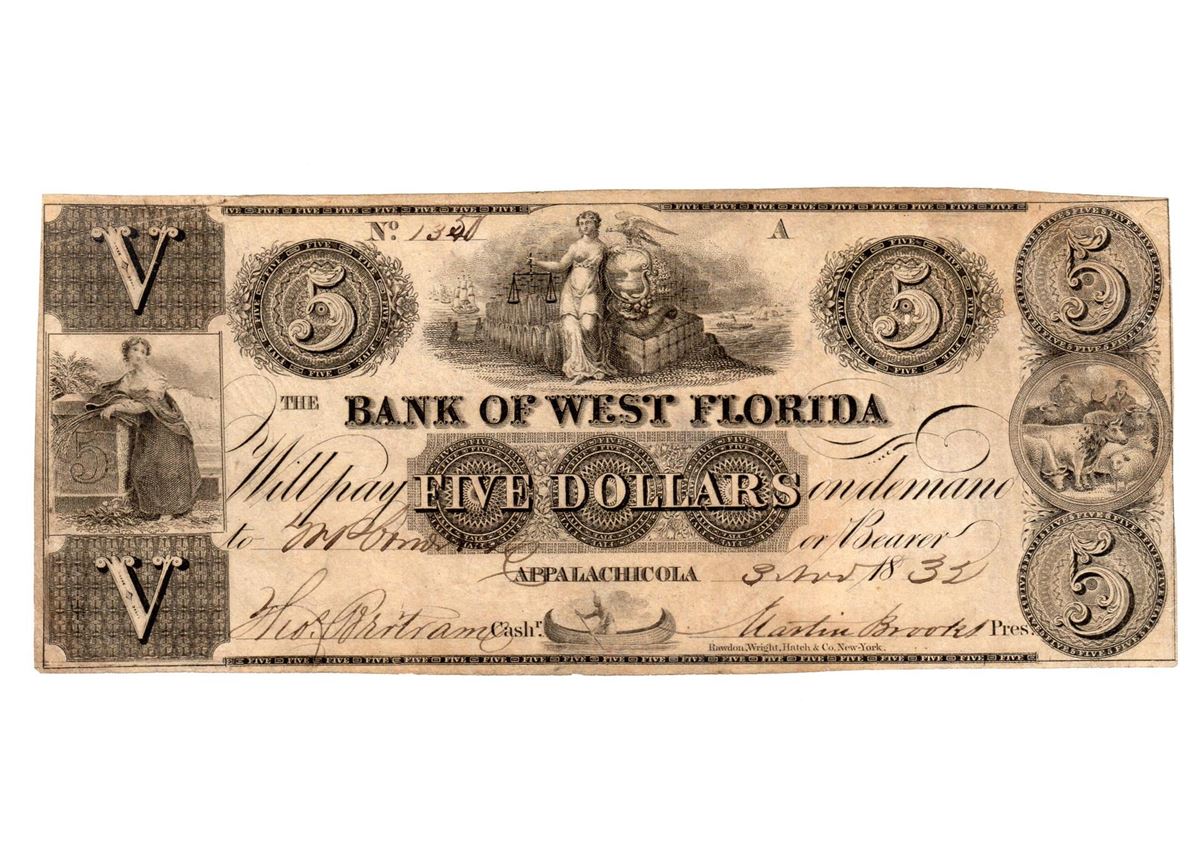 One 1832 $5 The Bank of West Florida Obsolete Note.