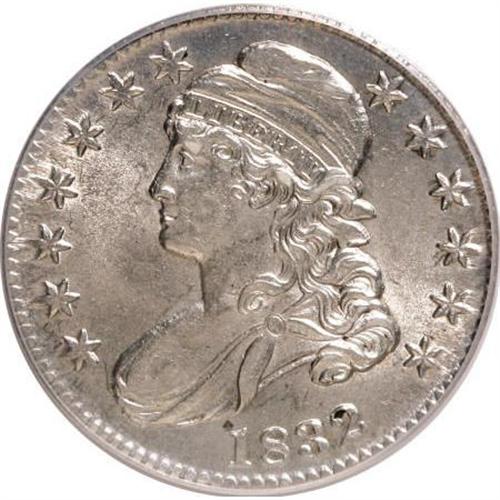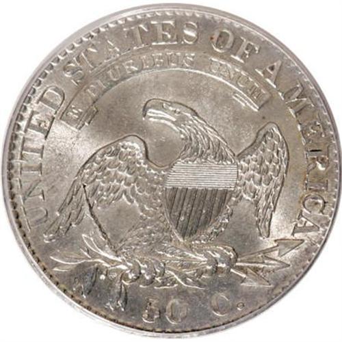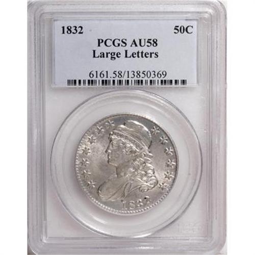 <B>1832 50C Large Letters AU58 PCGS.</B></I> PCGS Population (20/15). NGC Census: (0/0). (#6161)<BR><BR><B>Coin Engraver:</B> John Reich<BR><BR><b>Shipping:</b> Coins & Currency (<a target="_blank" href="http://www.heritageauctions.com/common/shipping.php">view shipping information</a>)