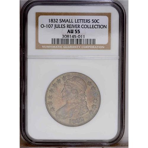 1832 50C Small Letters AU55 NGC. O-107, R.2. The 2 in 1832[50C] Small Letters AU55 NGC.