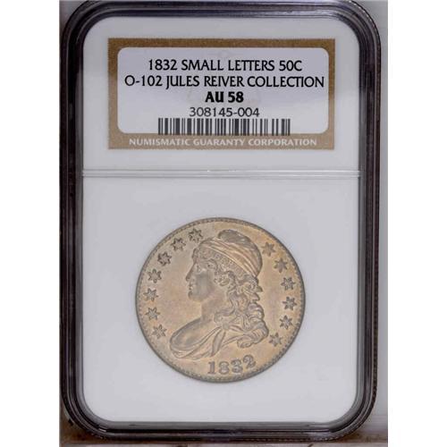 1832 50C Small Letters AU58 NGC. O-102, R.1.The malfor 1832[50C] Small Letters AU58 NGC.