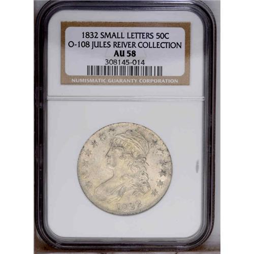 1832 50C Small Letters AU58 NGC. O-108, R.3. On this 1832[50C] Small Letters AU58 NGC.