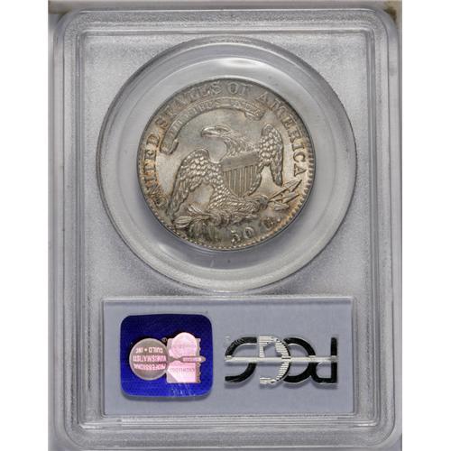 <B>1832<50C> Small Letters MS62 PCGS.</B></I> O-113, R.2. The telltale die dot appears at Liberty's throat. Lustrous with subtle apricot, blue, and rose toning at the periphery. Scattered marks and an abrasion to the left of Liberty's ear define the grade.