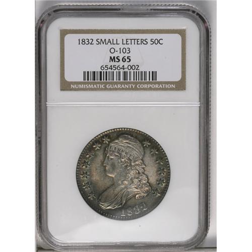 1832 50C Small Letters MS65 NGC. O-103, R.1. A die lum 1832