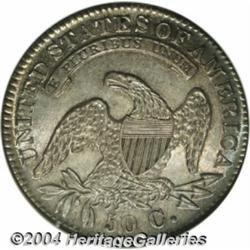 <table><tr><td><table><tr><td>1832 50C Small Letters MS66 NGC. O-103, R.1. Most easily attributed by the die lump on Liberty's drapery fold and the recutting on the upright of the 5 in the denomination. Quite a few high grade pieces are known of this variety, but this one stands above all the others and may very well be the finest known. The mint luster is thick and frosted and the obverse shows rich, deep violet, blue, and citrine toning, while the reverse is a more subdued gray-lilac. Outstanding eye appeal and overall preservation of surfaces. <BR><BR><B>Important notice:</B> Heritage usually auctions material at the rate of 200-250 lots per hour. On some occasions eBay Live bid software or the Internet may not be able to keep up with the pace of the auction. We recommend placing a realistic absentee bid now as insurance to avoid disappointment. Occasionally the auctioneer may eliminate or reject an eBay Live bid, and the auctioneer may also reopen a lot after the close of the eBay live bidding (usually because we missed an audience bid), and may reject your bid even if it shows you as the winning bidder. By bidding via eBay Live, you agree that Heritage may award the lot to another bidder at its sole discretion under the circumstances described above or any other reasonable circumstances. Since eBay bids are not shown to us until we open the lot on the floor, we treat those bids just like floor bids. In most cases the floor responds before the eBay bid is presented to us, due to Internet lag time, so for consistency we have made it a policy that floor bids are always considered first over tie eBay live bids. Also please note that all Heritage lots purchased through eBay Live carry a 20% Buyer's Premium. Please make sure you read the Terms and Conditions before you bid. <BR><BR><B>IMPORTANT ANNOUNCEMENT ABOUT RESERVES:</B> Heritage now divulges all reserves on its web site 7 days before every auction. If you want to know whether the reserve on this lot has been met, and if not, what the reserve amount is, please visit this lot page on the HeritageCoin.com web site, or email: bid@HeritageGalleries.com </span></font></td></tr></table></td></tr></table>