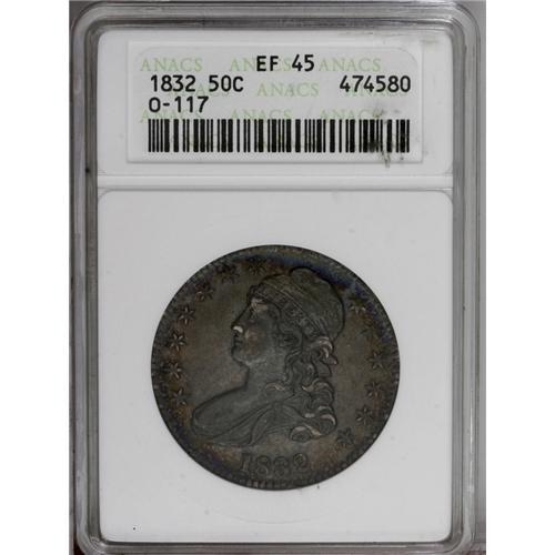 1832 50C Small Letters XF45 ANACS. O-117, High R.4. De 1832[50C] Small Letters XF45 ANACS.