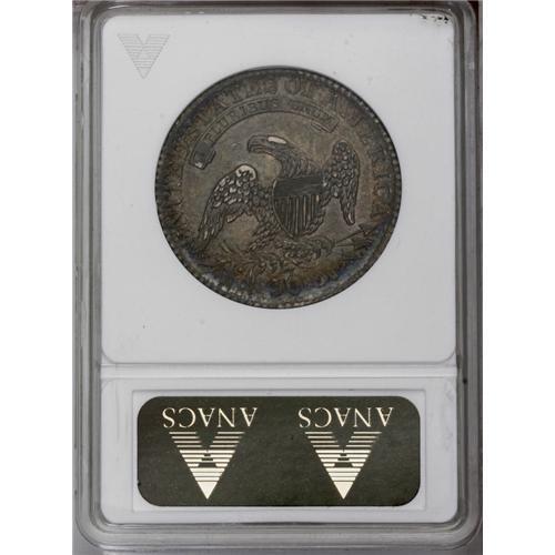 <B>1832<50C> Small Letters XF45 ANACS.</B></I> O-117, High R.4. Deep olive-brown centers are framed by dark russet, ocean-blue, and plum patination. The major devices are well struck, and only the C in the denomination is softly defined. A handling mark is noted in the field in front of the eagle's beak.