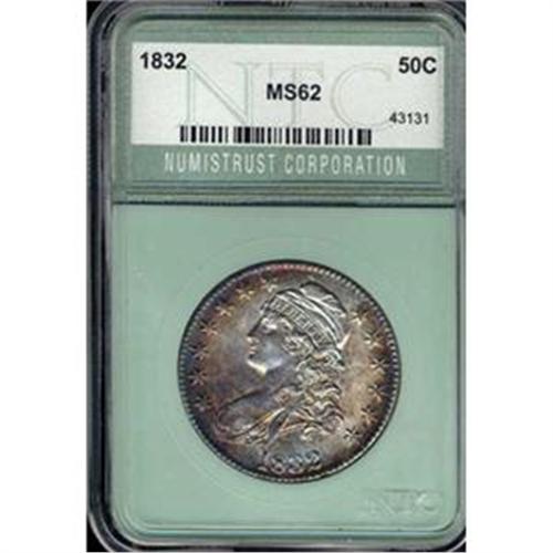 Better than your basic MS60 but not quite up to Numistrust’s MS62 estimation, yet it achieves much when compared to other bust half dollars of the period. Nicely toned over both dies, the underlying surface has satiny luster typical, too, of this design.