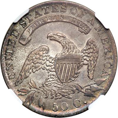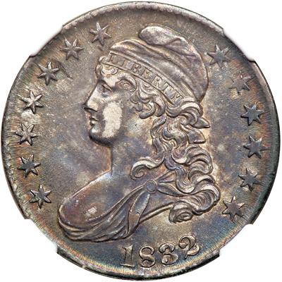 1832 Capped Bust Half Dollar. NGC graded AU-58 O-102, R-1. Nice original toning.
