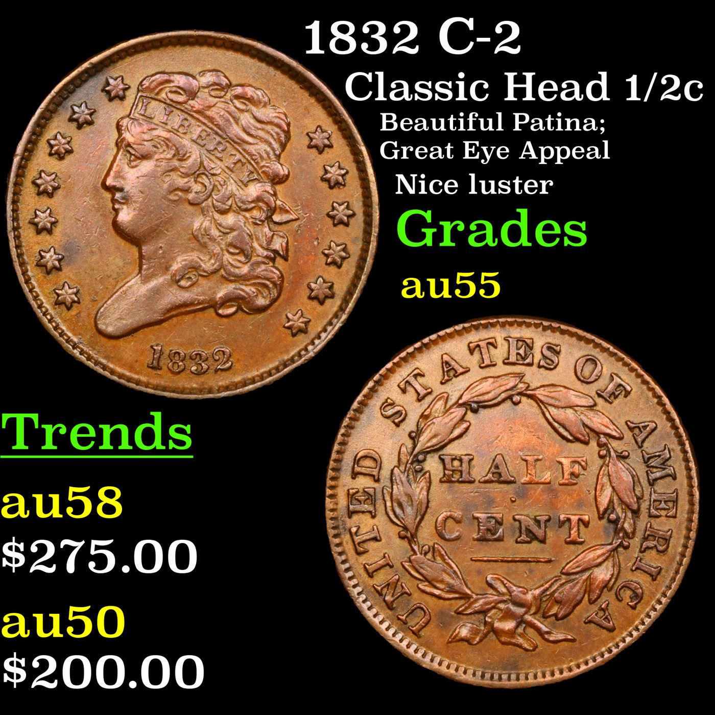 1832 C-2 Classic Head half cent 1/2c Grades Choice AU.